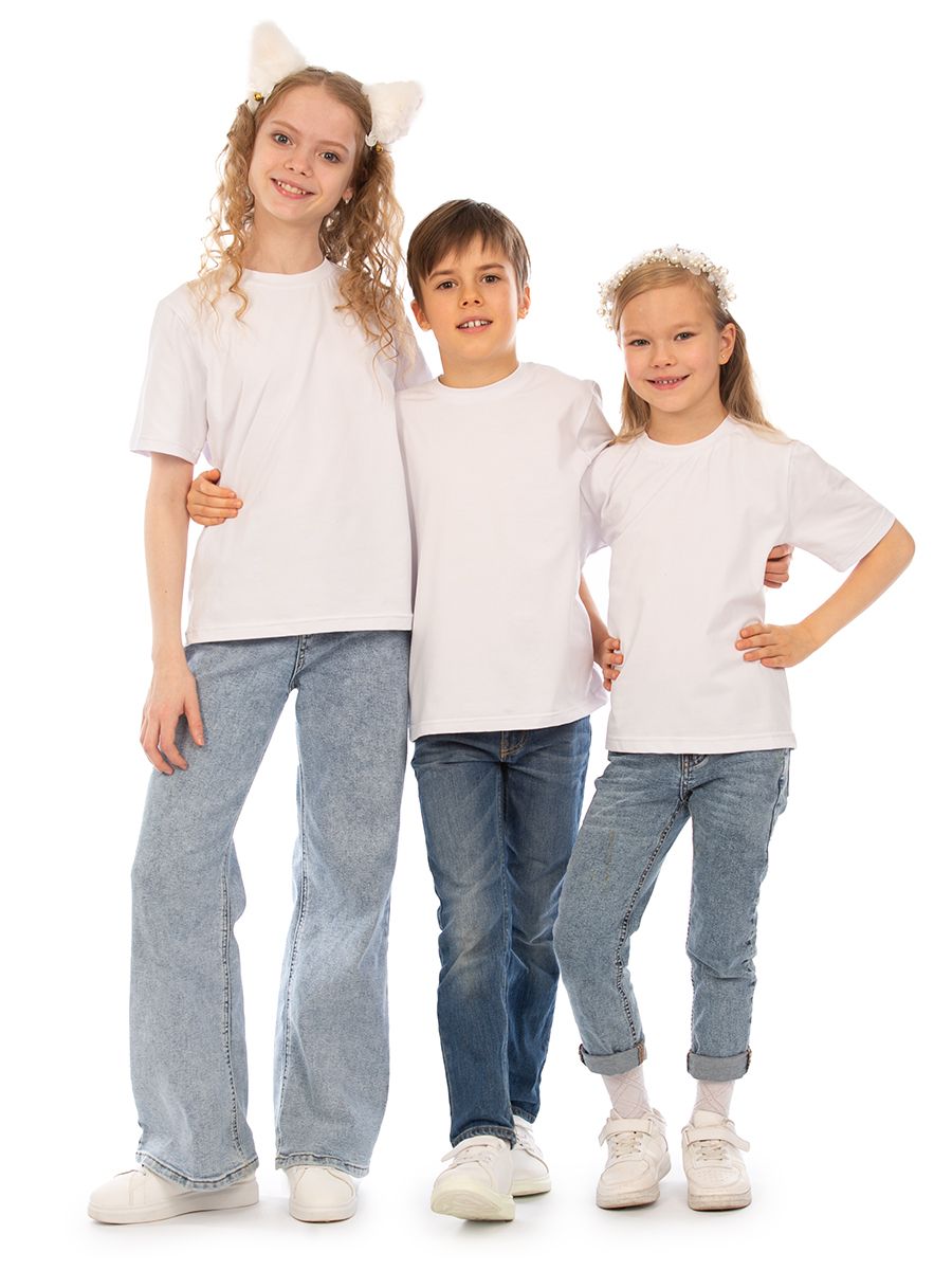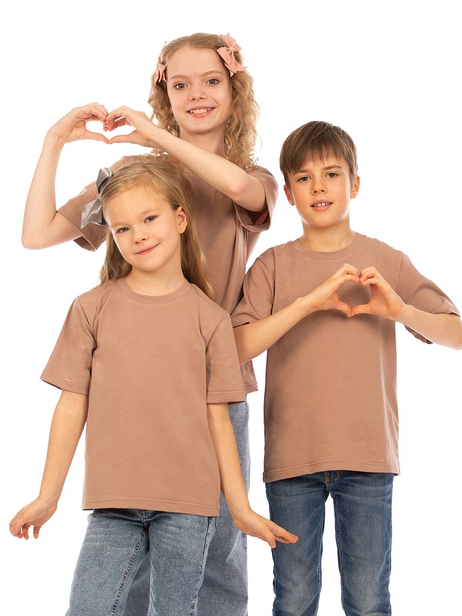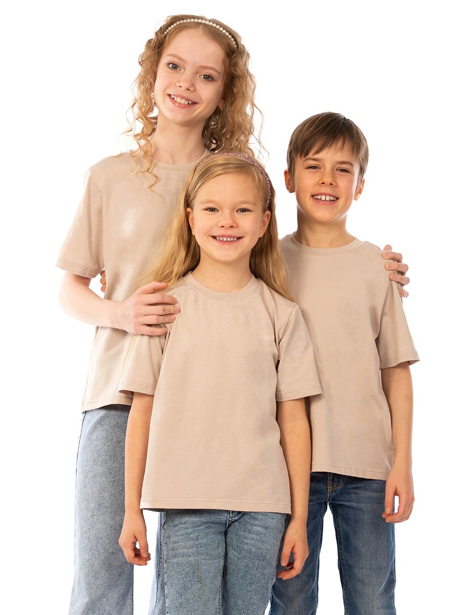 Однотонная футболка, унисекс, которая подходит как для девочек так и для мальчиков. Можно использовать при повседевного использования дома, а также походов в детский сад и школу.